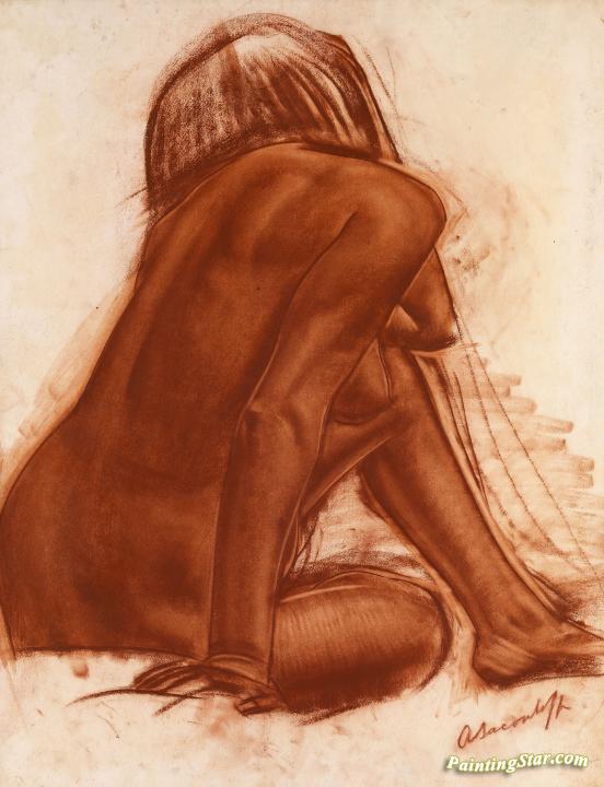Seated Nude From The Back, Art Painting by Alexander Evgenievich Yakovlev