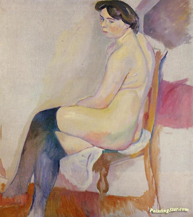 Seated Nude with Black Stockings, Art Painting by Jules Pascin