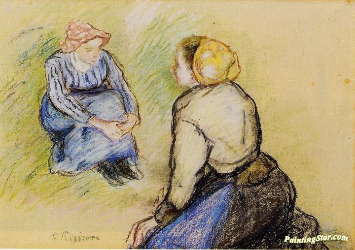 Seated Peasant and Kneeling Peasant, Art Painting by Camille Pissarro