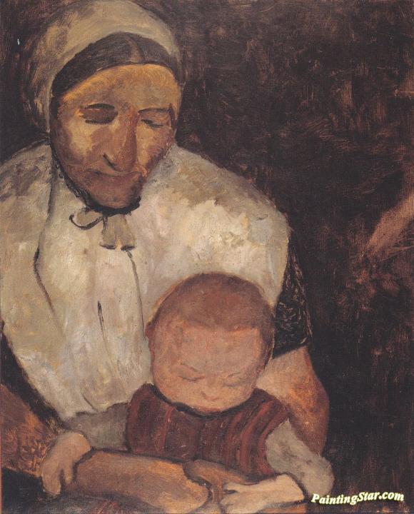Seated Peasant Woman with Child on Her Lap, Art Painting by Paula Modersohn-Becker