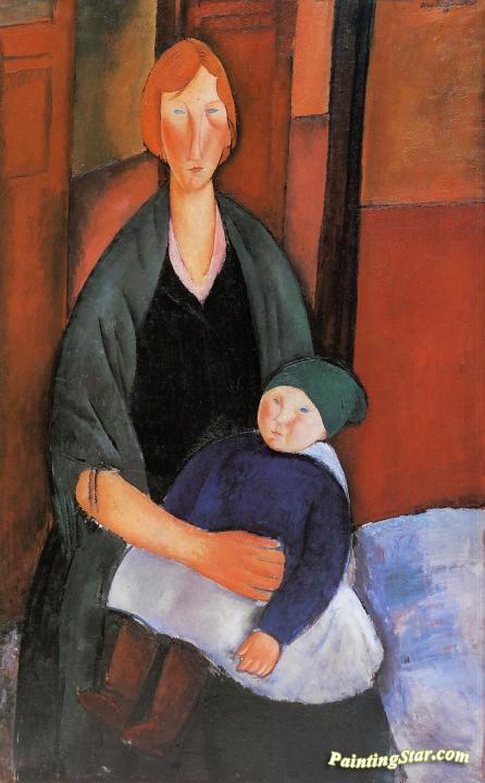 Seated Woman with Child, Art Painting by Amedeo Modigliani
