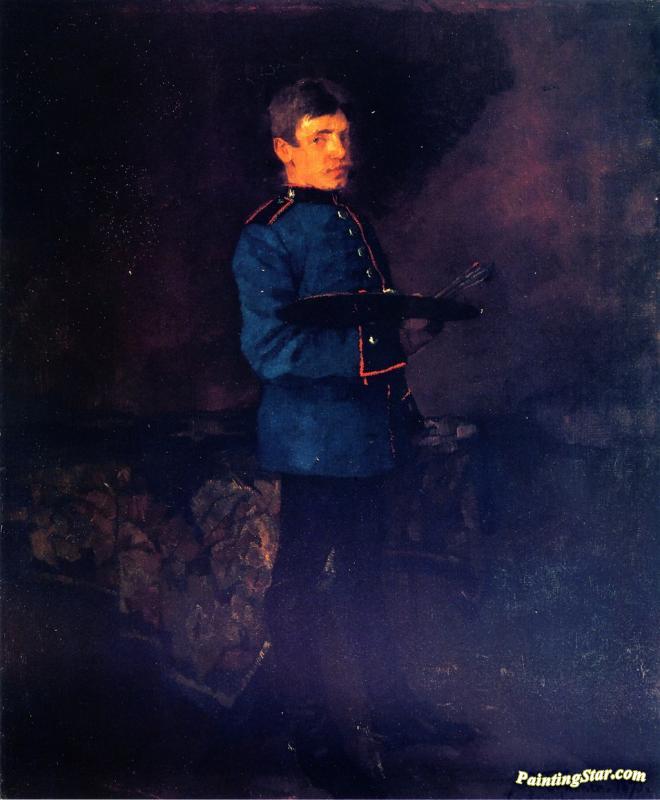 Self-portrait As A Dragoon With Pallet, Art Painting by Wilhelm Trübner