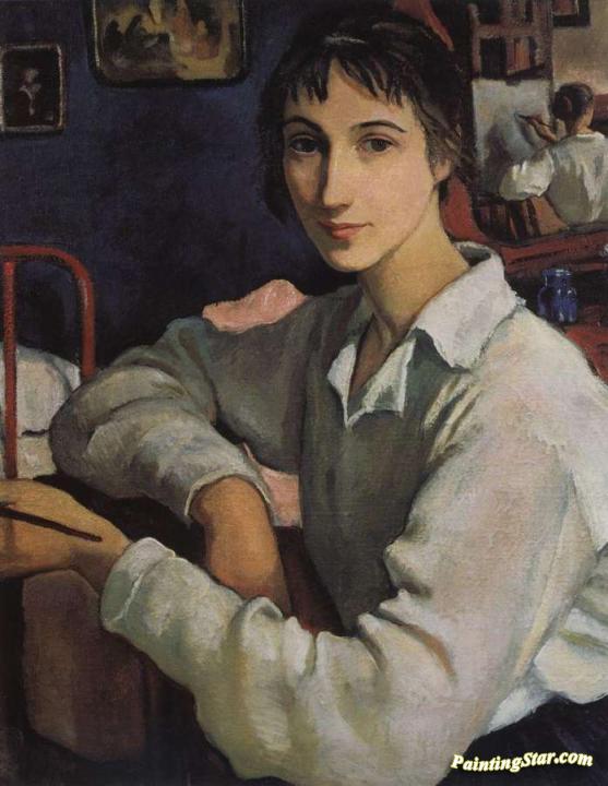 Self portrait in a white blouse, Art Painting by Zinaida Serebriakova