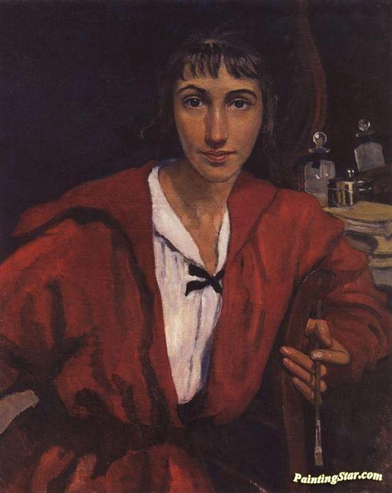 Self portrait in red, Art Painting by Zinaida Serebriakova
