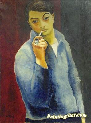 Self Portrait with a Pipe, Art Painting by Moise Kisling