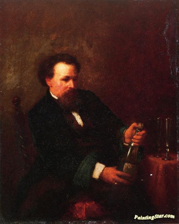 Self Portrait with Bottle of Champagne, Art Painting by Eastman Johnson
