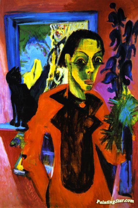Self Portrait with Cat, Art Painting by Ernst Ludwig Kirchner