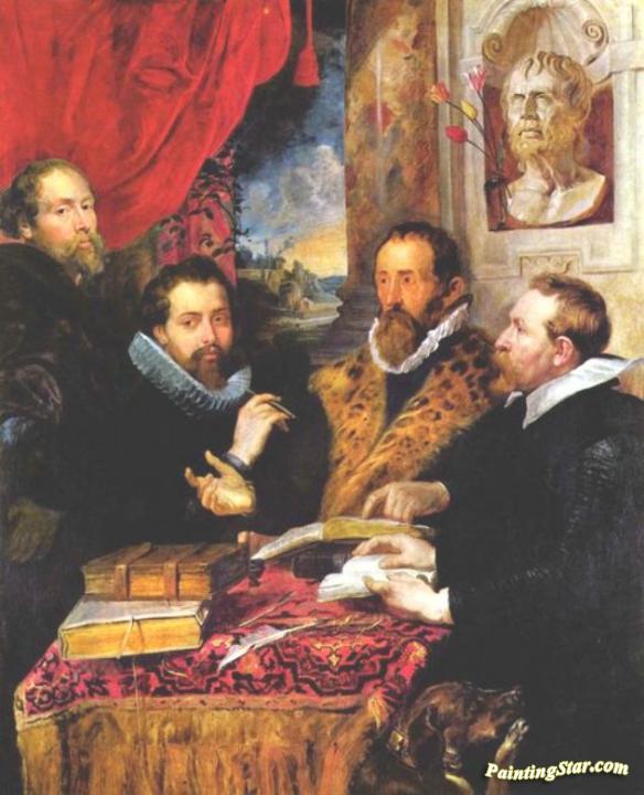 Selfportrait with brother Philipp, Justus Lipsius and another scholar, Art Painting by Peter Paul Rubens