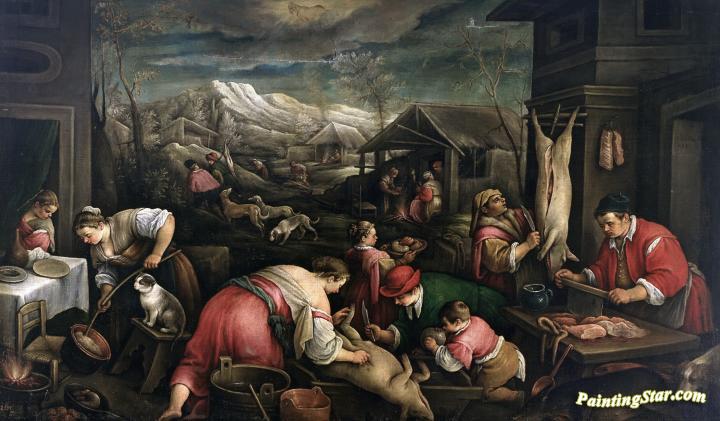 Series Of The Months 12, December (capricorn), Art Painting by Francesco Bassano the Younger