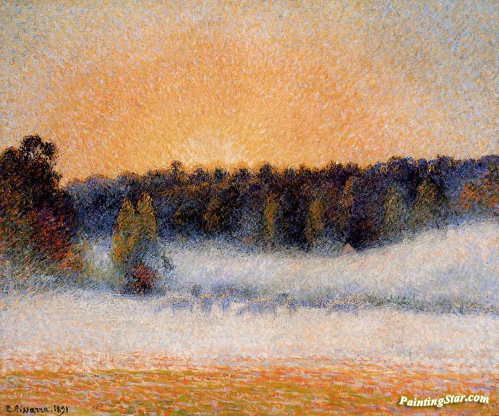 Setting Sun and Fog, Eragny, Art Painting by Camille Pissarro