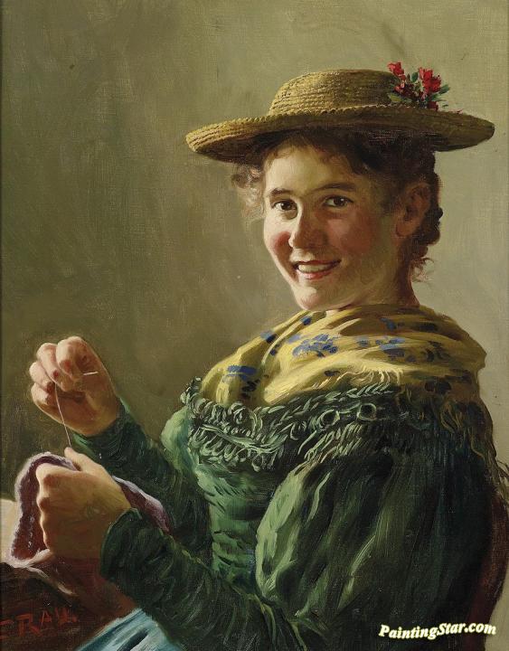 Sewing Girl, Art Painting by Emil Rau
