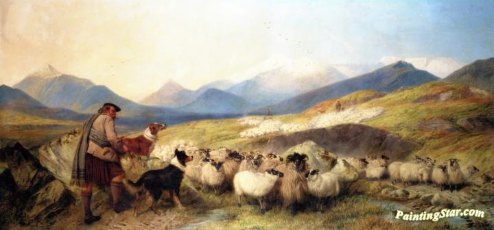 Sheep Gathering in Glen Spean, Art Painting by Richard Ansdell