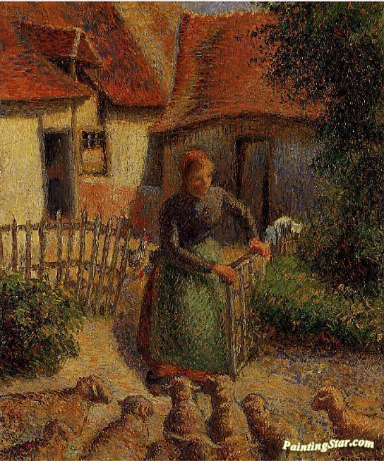 Shepherdess Bringing in the Sheep, Art Painting by Camille Pissarro