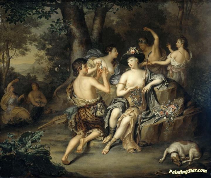 Shepherds and shepherdesses in a landscape, Art Painting by Hieronymus van der Mij