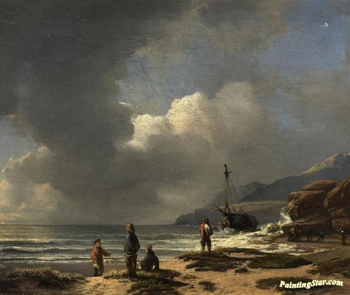 Ship In The Surf Before A Rocky Coast, Art Painting by Andreas Achenbach