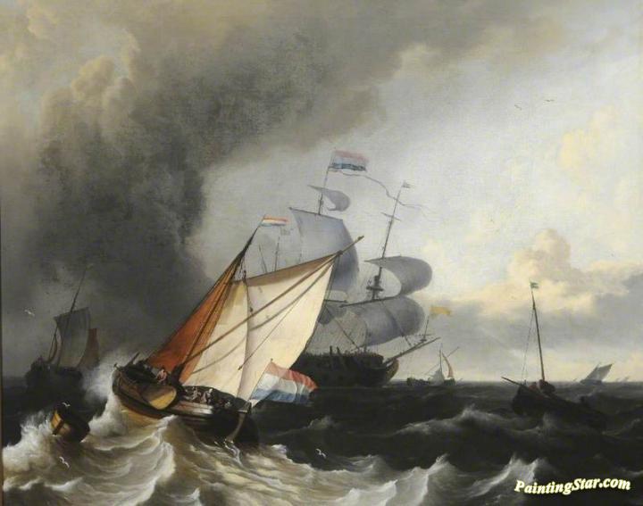 Shipping: A Fresh Breeze, Art Painting by Ludolf Bakhuizen