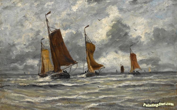 Ships At Full Sea, Art Painting by Hendrik Willem Mesdag
