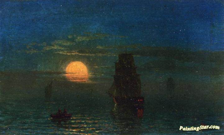 Ships in Moonlight, Art Painting by Albert Bierstadt