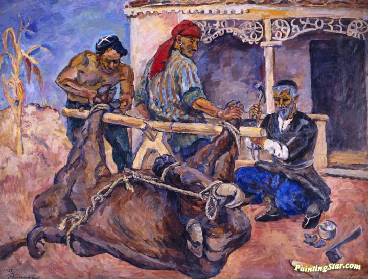Shoeing the buffalo, Art Painting by Pyotr Konchalovsky