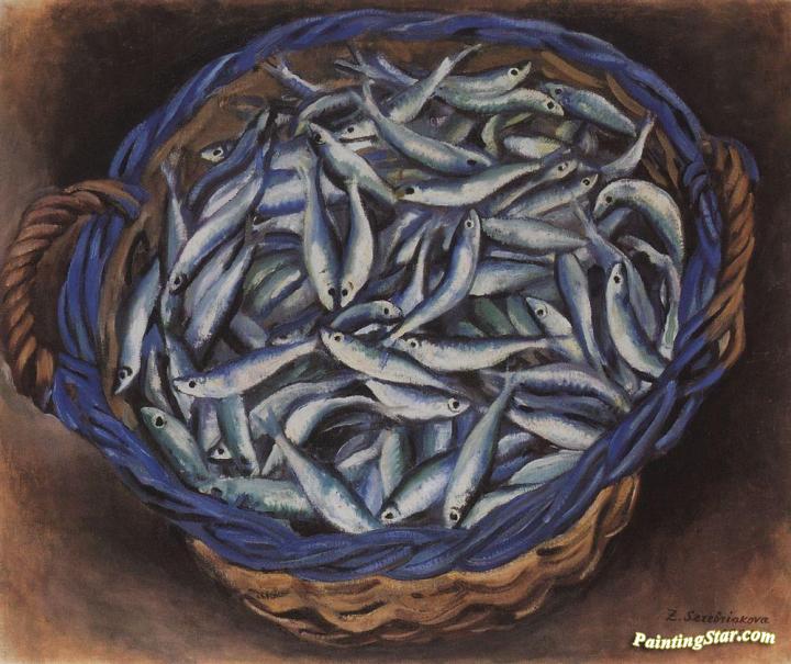 Shopping cart with sardines, Art Painting by Zinaida Serebriakova