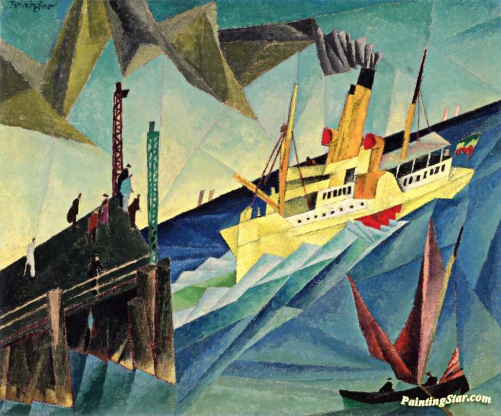 Side-wheel Steamer At The Landing, Art Painting by Lyonel Feininger