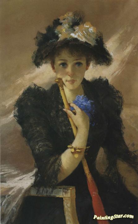 Signora con ombrellino, Art Painting by Vittorio Matteo Corcos