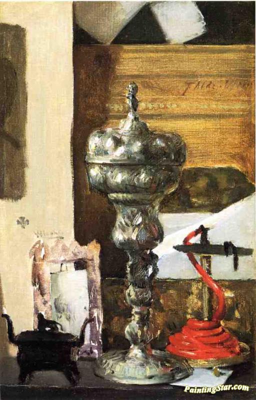 Silver Chalice, Japanese Bronze And Red Tapir, Art Painting by Julian Alden Weir