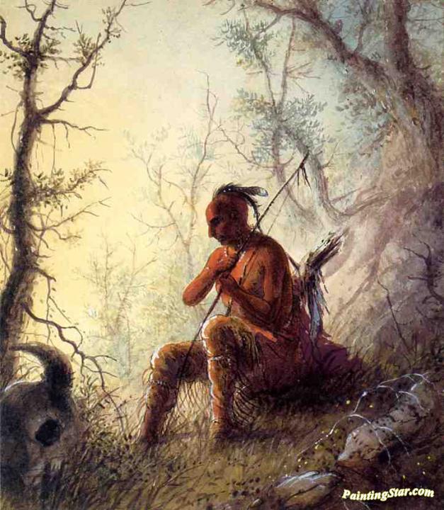 Sioux Indian at a Grave, Art Painting by Alfred Jacob Miller