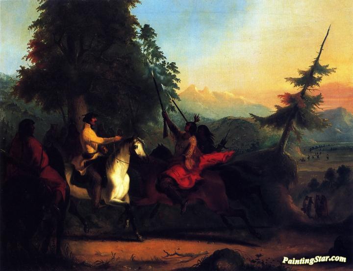 Sir William Drummond Stewart Meeting Indian Chief, Art Painting by Alfred Jacob Miller