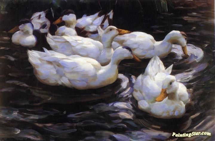 Six Ducks in a Pond, Art Painting by Alexander Koester