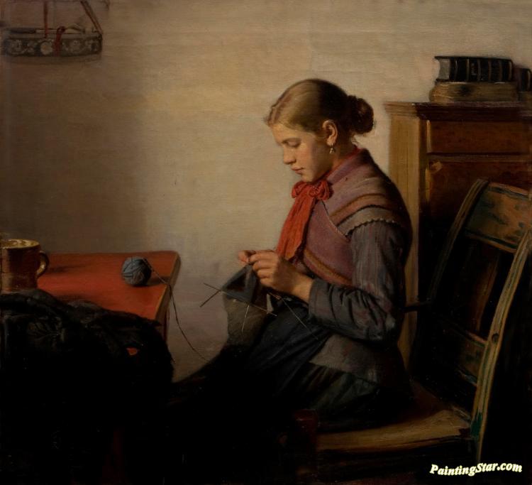 Skagen girl, Maren Sofie, knitting, Art Painting by Michael Peter Ancher