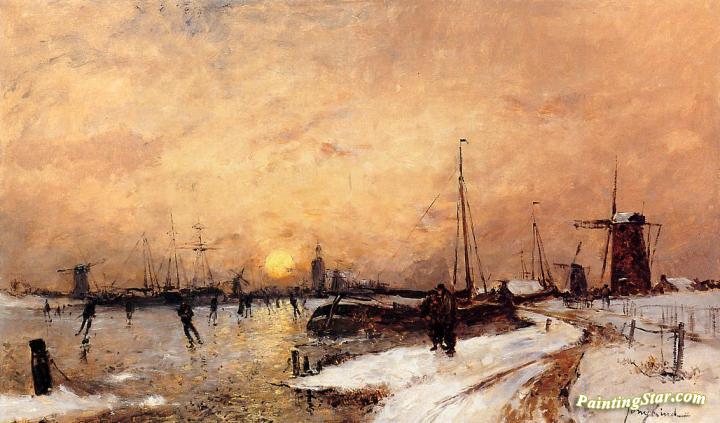 Skaters at Dordrecht, Art Painting by Johan Berthold Jongkind