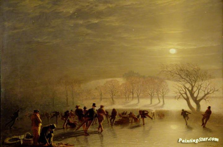 Skaters, Duddingston Loch by Moonlight, Art Painting by Charles Lees
