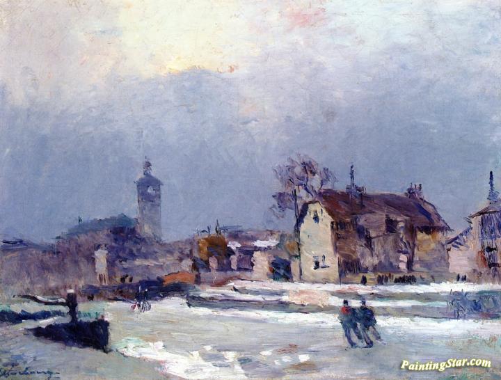 Skaters On The Canal De La Villette, Art Painting by Albert Lebourg