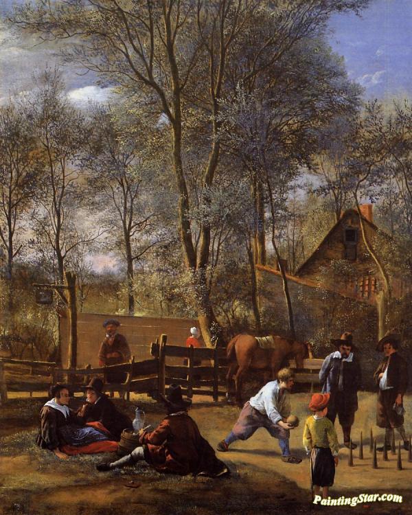 Skittle Players outside an Inn, Art Painting by Jan Steen