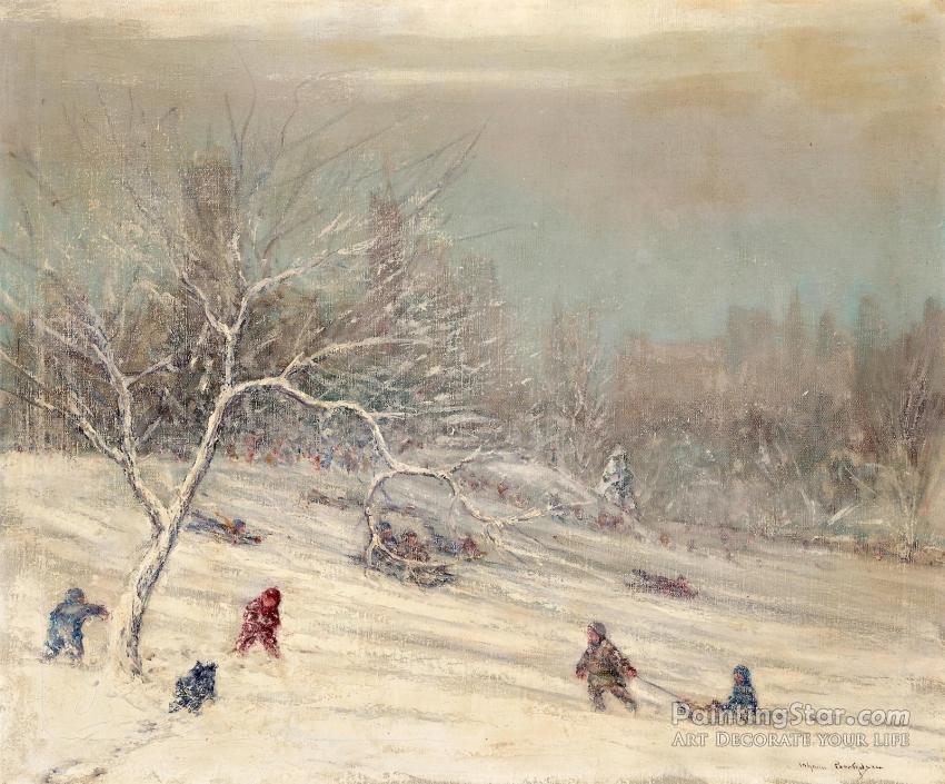 Sledding In Central Park, Art Painting by Johann Berthelsen