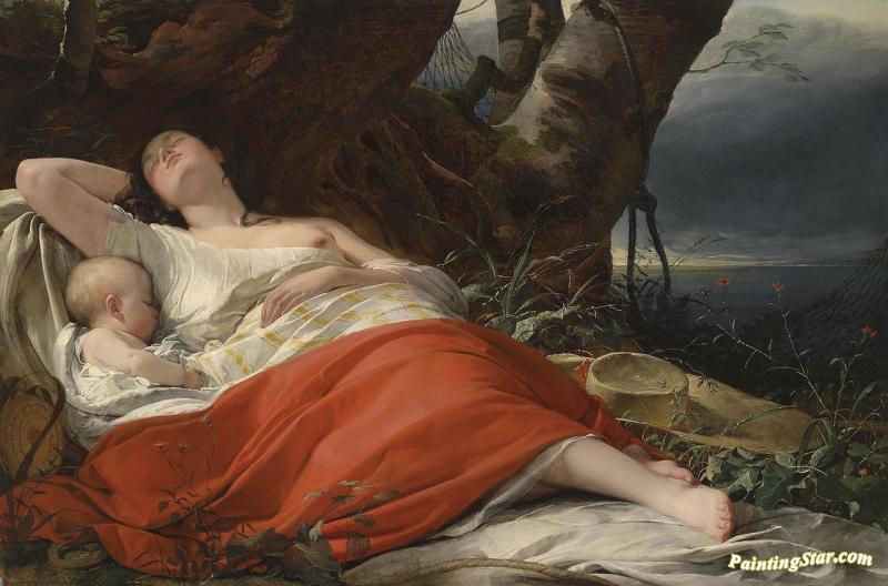Sleeping Fisherwoman, Art Painting by Friedrich von Amerling