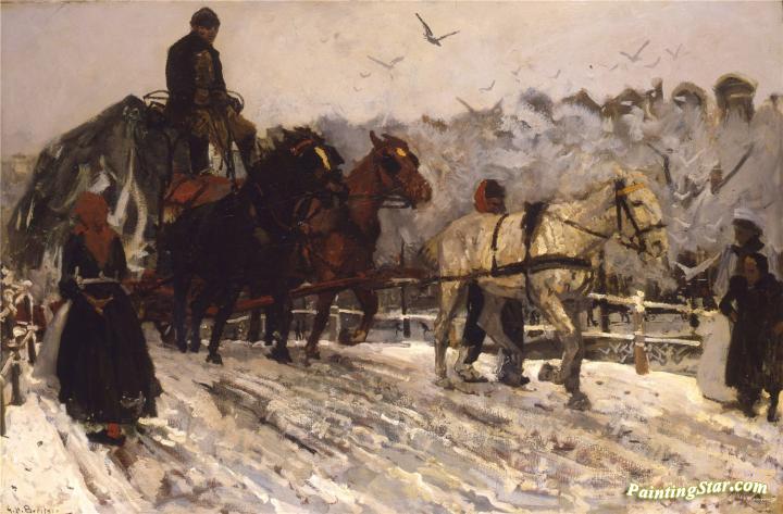 Sleperspaarden in de sneeuw, Art Painting by George Heidrik Breitner