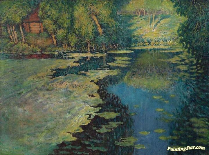 Small Arm of the River with the Red Cottage, Art Painting by Václav Radimský