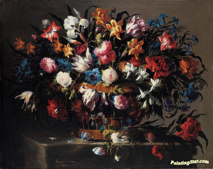Small Basket Of Flowers, Art Painting by Juan de Arellano
