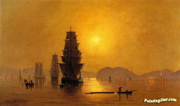 Smoky Sunrise, Astoria Harbor, Art Painting by Cleveland Rockwell
