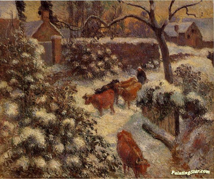 Snow Effect in Montfoucault, Art Painting by Camille Pissarro