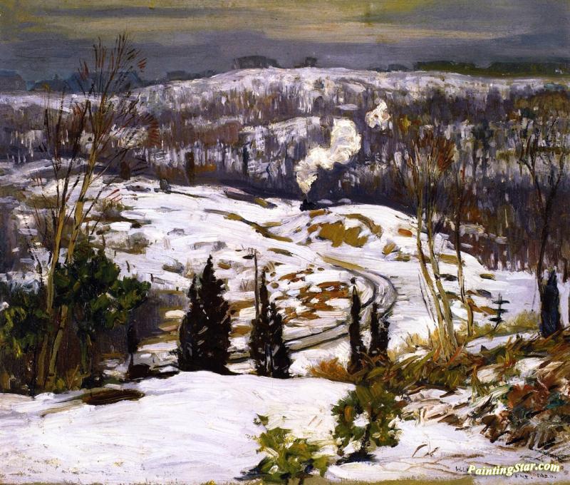 Snow Scene with Train, Art Painting by William Lester Stevens