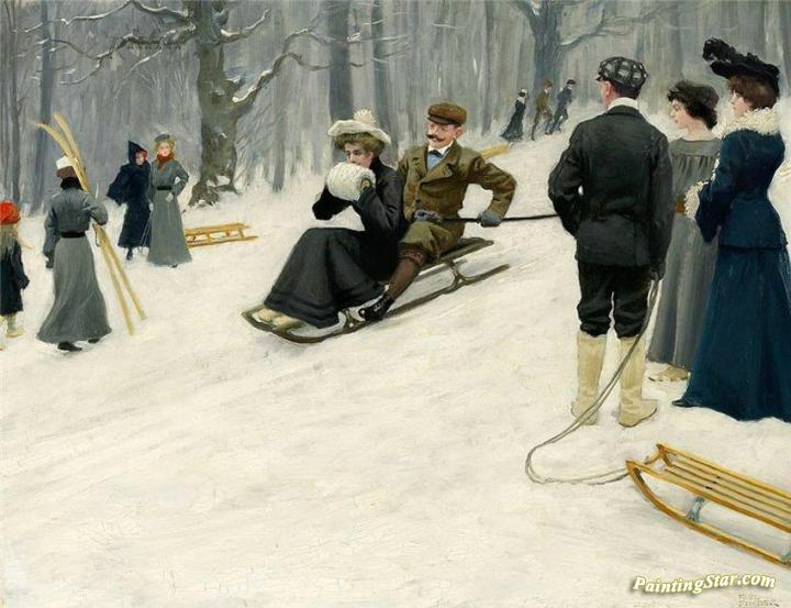 Snow Sled Ride In Søndermarken, Copenhagen, Art Painting by Paul Gustave Fischer
