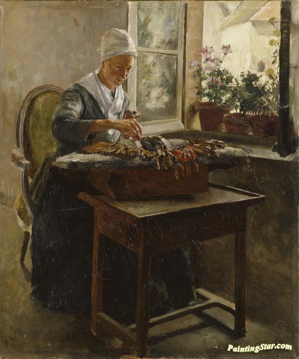 Spetsknypplerskan, Art Painting by Georg Pauli