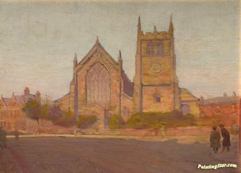 St Werburgh's Church From Wardwick, Derby, Art Painting by Ernest Townsend