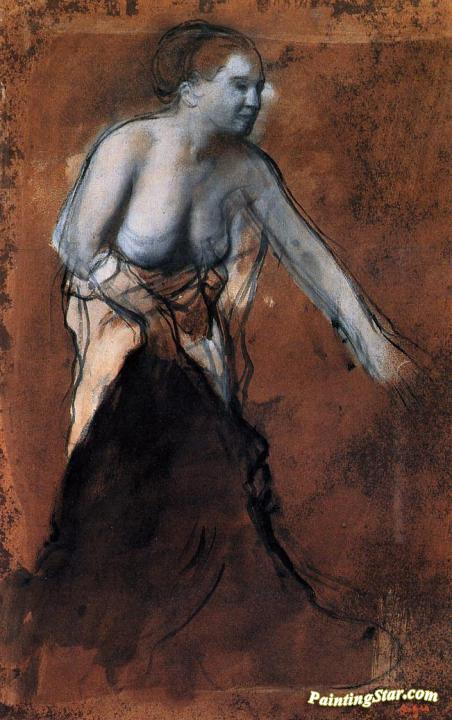 Standing Female Figure with Bared Torso, Art Painting by Edgar Degas