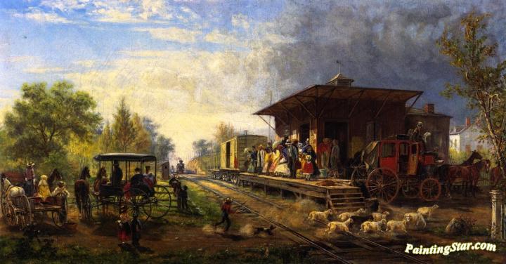 Station on the Morris and Essex Railroad, Art Painting by Edward Lamson Henry