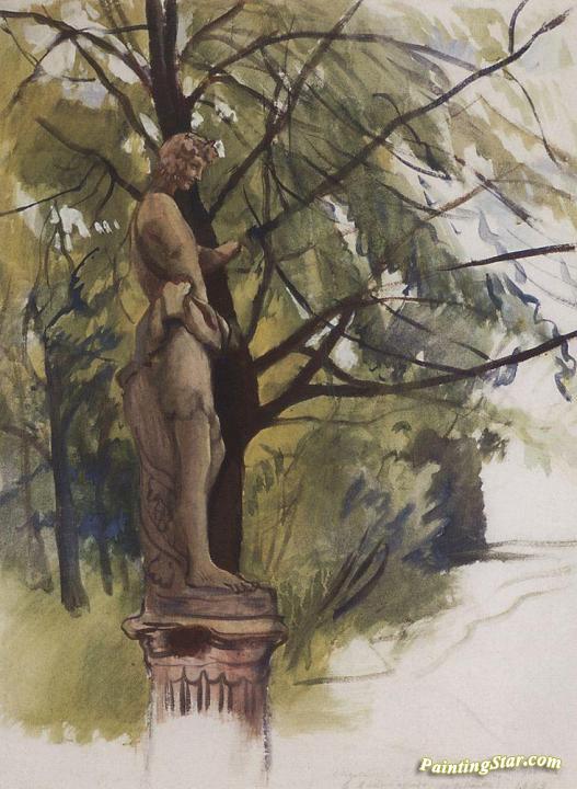 Statue of a faun in the Yusupov garden in St. Petersburg, Art Painting by Zinaida Serebriakova