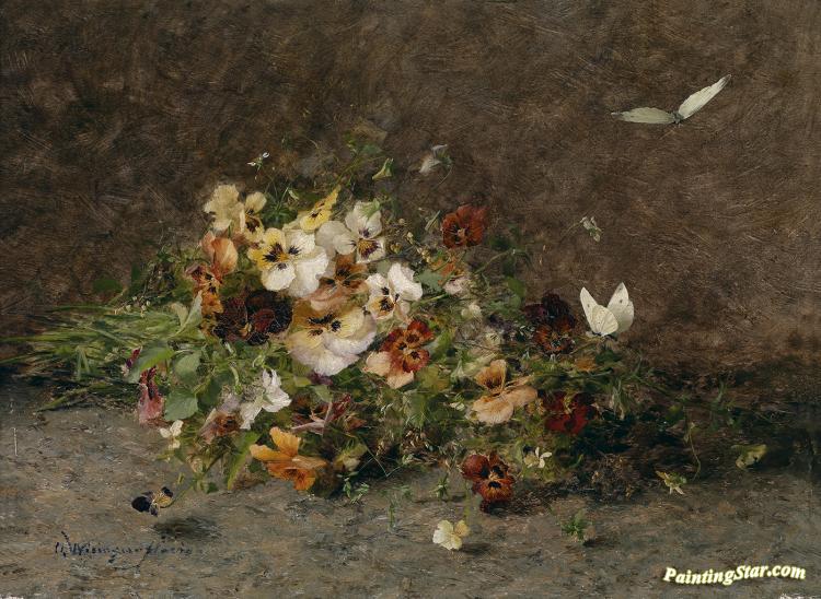 Stiefmütterchen Und Schmetterlinge, Art Painting by Olga Wisinger-Florian